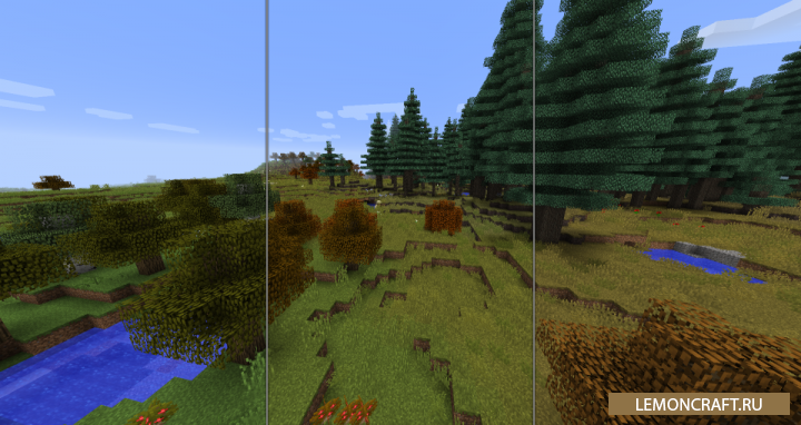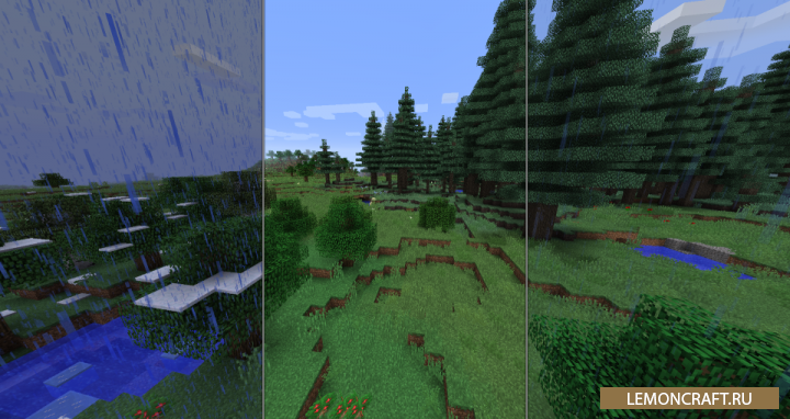 Мод Serene Seasons добавляет в игру возможность установить смену времен года. После установки мода лето будет плавно перетекать в осень с небольшими дождями. Осень же перейдет в лютую зиму с обильными снегопадами. Все сделано очень красиво и позволит внести некую изюминку в вашу игру. Данный мод будет работать со всеми биомами и активации не требует.